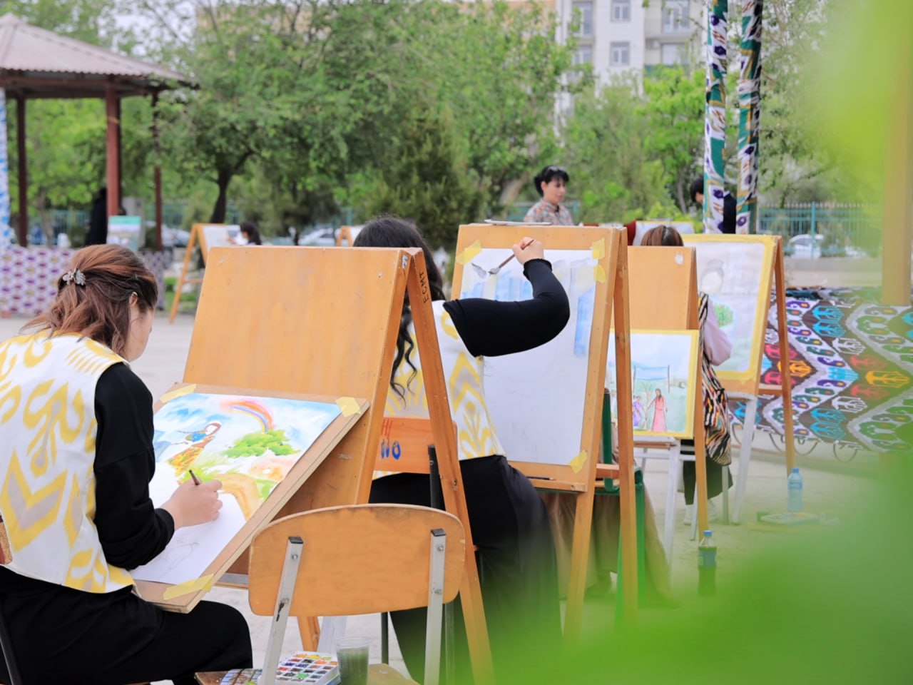 🔹Tanlov ishtirokchilari “Yashil makon” loyihasi, suvdan oqilona foydalanish, cho‘llanishga qarshi kurash va atrof-muhitni muhofaza qilish mavzularini mo‘yqalam orqali aks ettirdilar.