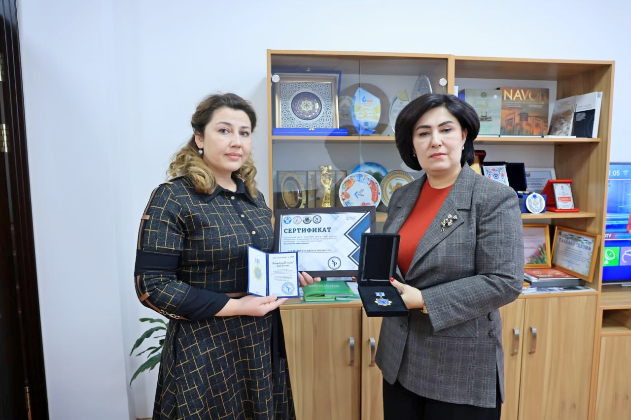 Scientific Publications ilmiy matbuot markazi tomonidan o‘tkazilgan ilmiy maqolalar tanlovida muvaffaqiyatli ishtirok etgani hamda yangi g‘oya va nazariyalarini ilmiy jurnallarda tarqatishdagi faolligi uchun Buxoro muhandislik-texnologiya instituti erkin tadqiqotchisi Hurriyat Gulmatova “Ta’limdagi muvaffaqiyatlari uchun” ko‘krak nishoni bilan taqdirlandi.