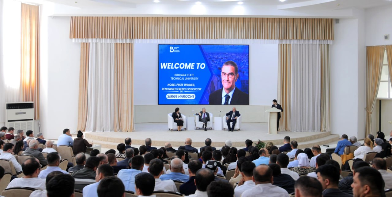 Buxoro davlat texnika universitetida Nobel mukofoti laureati, kvant fizikasi sohasining yetakchi olimi — Serj Arosh (Serge Haroche) ishtirokida Buxoro viloyatidagi barcha oliy ta’lim muassasalari talabalari va doktorantlari uchun seminar-trening tashkil etildi.