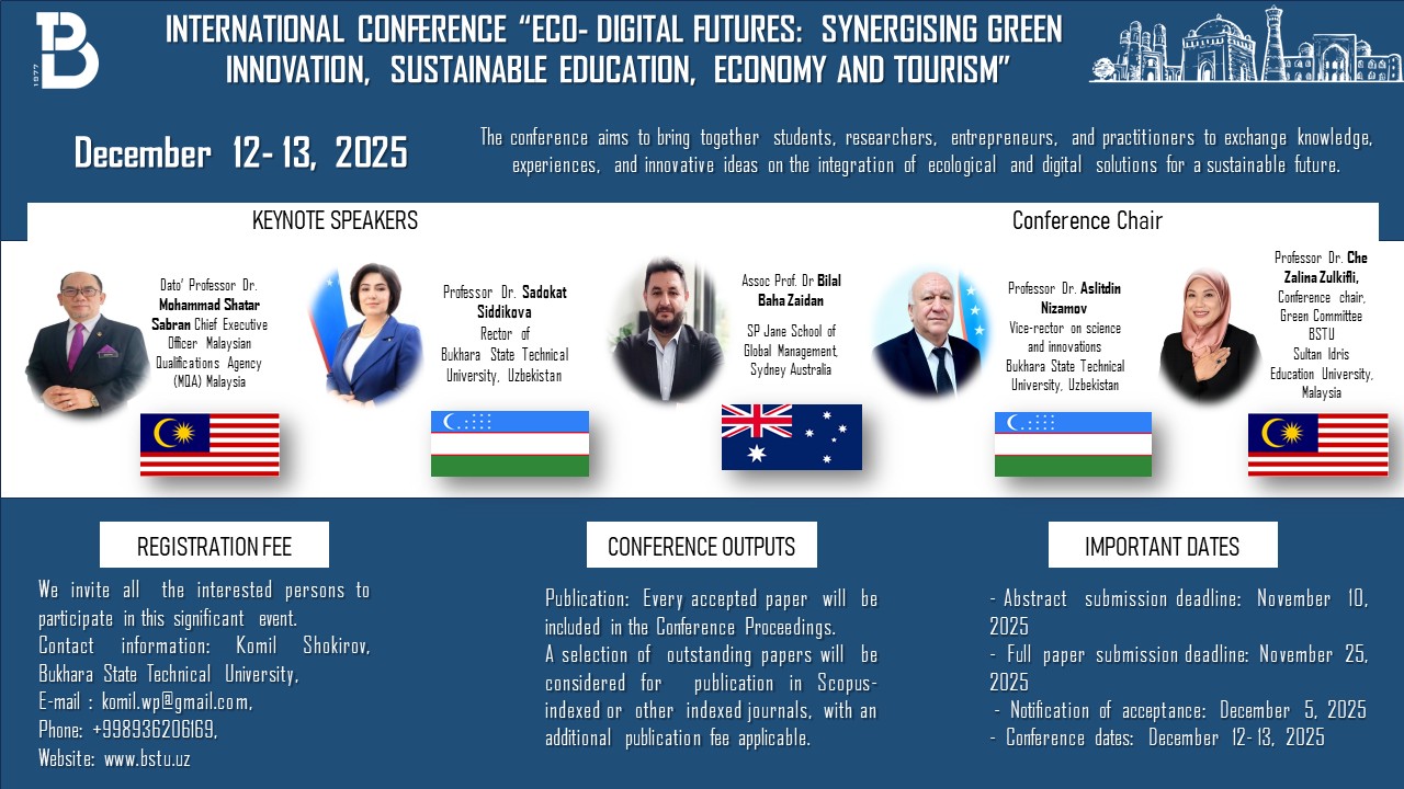 “Eko-raqamli kelajak: Yashil innovatsiyalar, barqaror ta'lim, iqtisodiyot va turizm sinergiyasi” xalqaro konferensiya