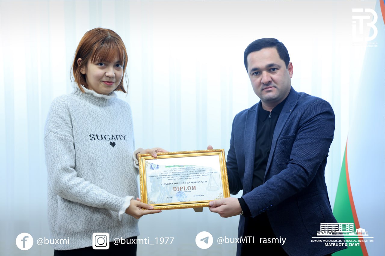 Faxrli o‘rinlarni egallagan talabalar diplom hamda pul mukofotlari bilan taqdirlandi.