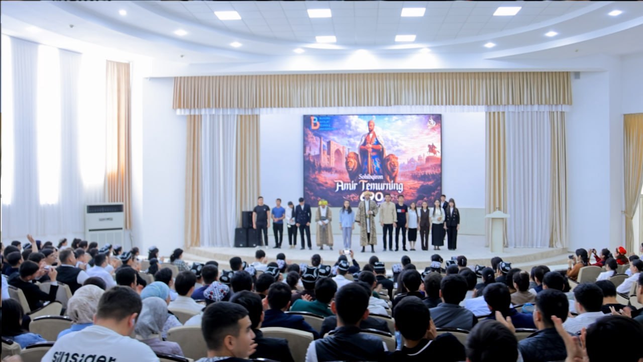 🔷 Dastur doirasida talabalar tomonidan she’rlar o‘qildi, sahna ko‘rinishlari namoyish etilib, Sohibqiron siymosi aks etgan badiiy chiqishlar tashkil qilindi. Shuningdek, universitetning “QALQON” jamoasi tomonidan ijro etilgan sahna ko‘rinishlari yoshlarni vatanparvarlik ruhida tarbiyalash, ularda tarixga hurmat va ajdodlar merosiga sadoqat tuyg‘usini mustahkamlashga xizmat qildi.