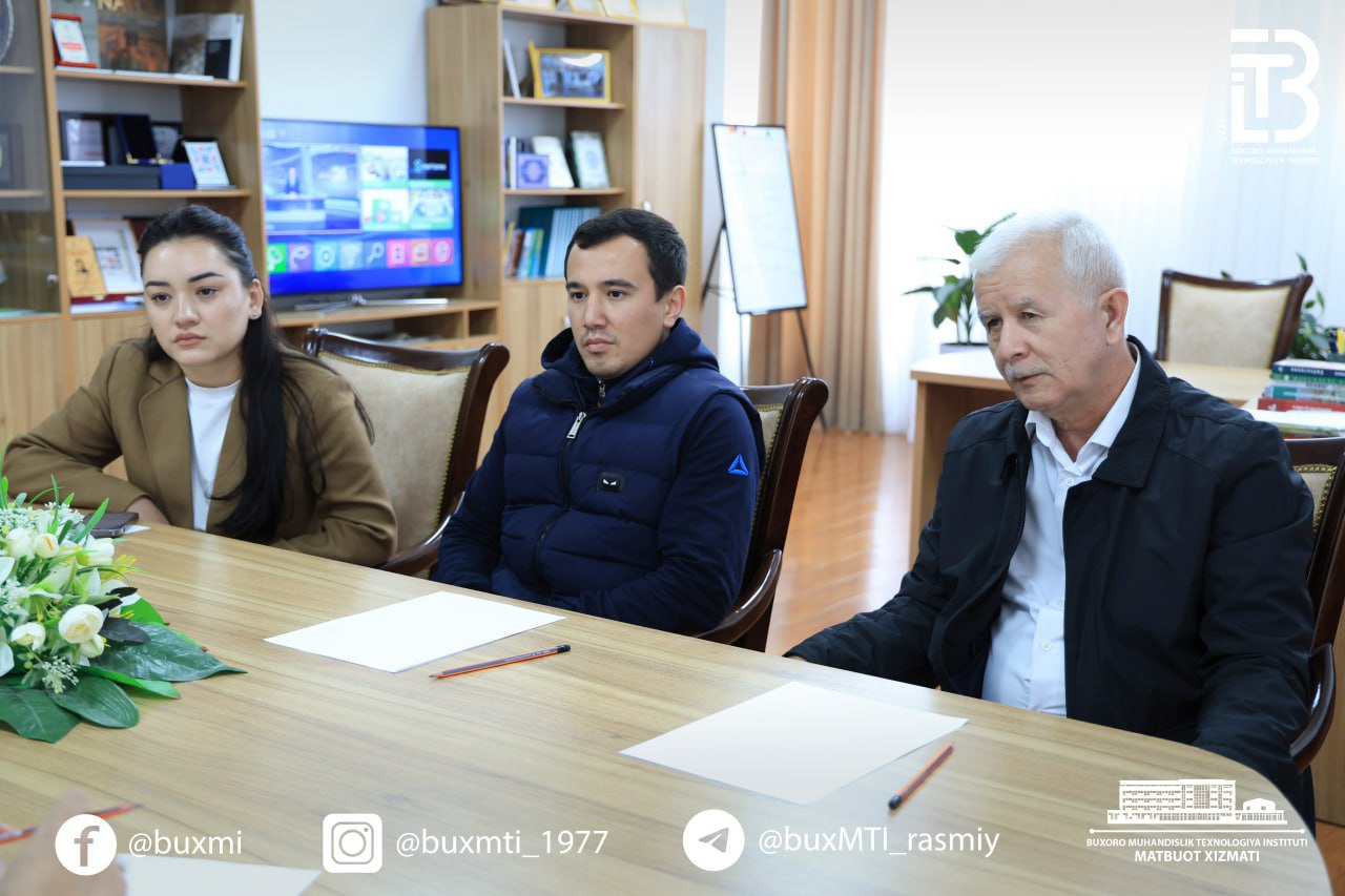 Buxoro muhandislik-texnologiya institutiga maishiy texnika va elektronika ishlab chiqaruvchi Artel kompaniyasi mas’ullari, ARTEL innovatsion o‘quv markazi direktori Yunus Raxmanov, direktor o‘rinbosari G‘ayrat Isakov, kadrlar bilan ishlash bo‘yicha korxona menejeri Karina Kadirova tashrif buyurdi.