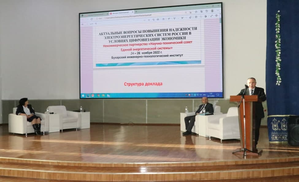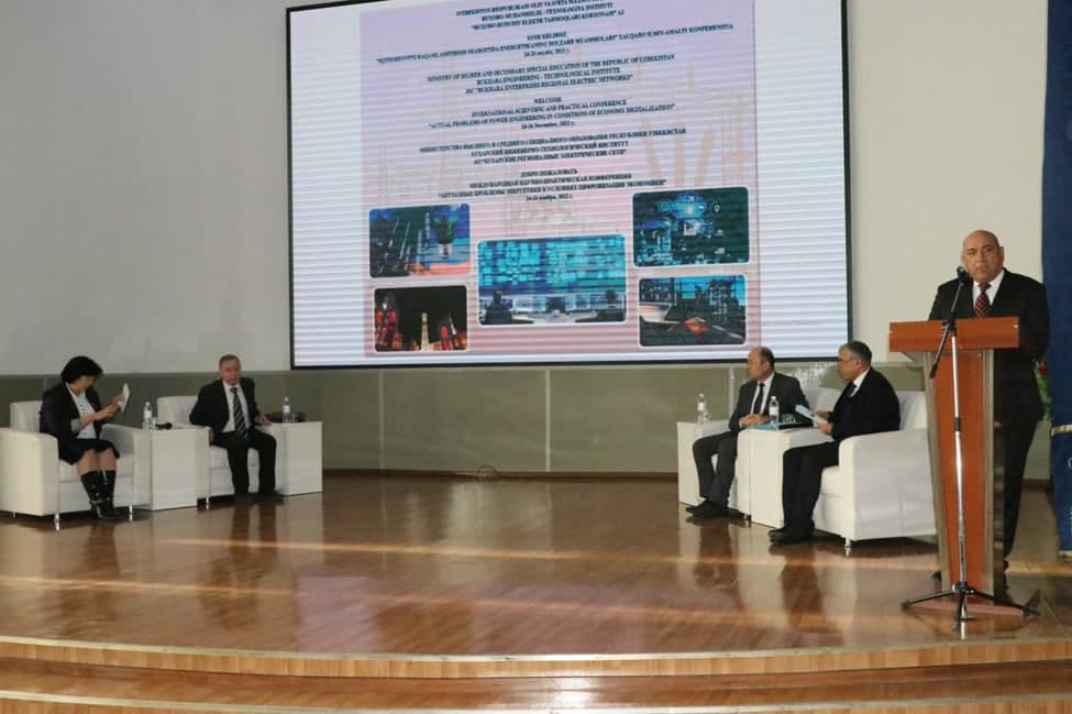 2022 йил 24 ноябр куни Бухоро муҳандислик – технология институтида Ўзбекистон Республикаси Вазирлар Маҳкамасининг 2022 йил 7 мартдаги 101-Ф сонли Фармойишига мувофиқ тасдиқланган ва ўтказилиши 24-26 ноябр кунлари режалаштирилган “Иқтисодиётни рақамлаштириш шароитида энергетиканинг долзарб муаммолари” мавзусида халқаро илмий-техник конференциянинг очилишига бағишланган ялпи мажлиси бўлиб ўтди. Ялпи мажлисни очиб бериш учун институт ректори т.ф.д., проф. Н.Р.Баракаев сўзга чиқди ва ўзининг табрик сўзида анжуманнинг мақсад ва вазифалари тўғрисида гапириб ҳозирги кунда энергетикадаги долзарб муаммолар ва уларни бартараф этишда рақамли тизимларни ва технологияларни жорий этишнинг аҳамияти тўғрисида айтиб ўтди. Жумладан, у энергетика соҳасида рақамли технологияларни жорий этиш бўйича Ўзбекистон ҳукумати ва энергетика вазирлиги томонидан олиб борилаётган ишлар ва эришилган натижаларга тўхталиб ўтди. Иқтисодиётни рақамлаштириш илм-фан ва мутахассис кадрлар тизимига қўядиган вазифалар ҳамда талаблар тўғрисида тўхталиб анжуман ишига мувафақиятлар тилади.