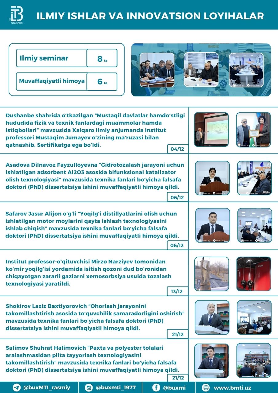 Bosh sahifa Buxoro muhandislik-texnologiya instituti tomonidan 2024-yil dekabr oyi davomida amalga oshirilgan ishlar