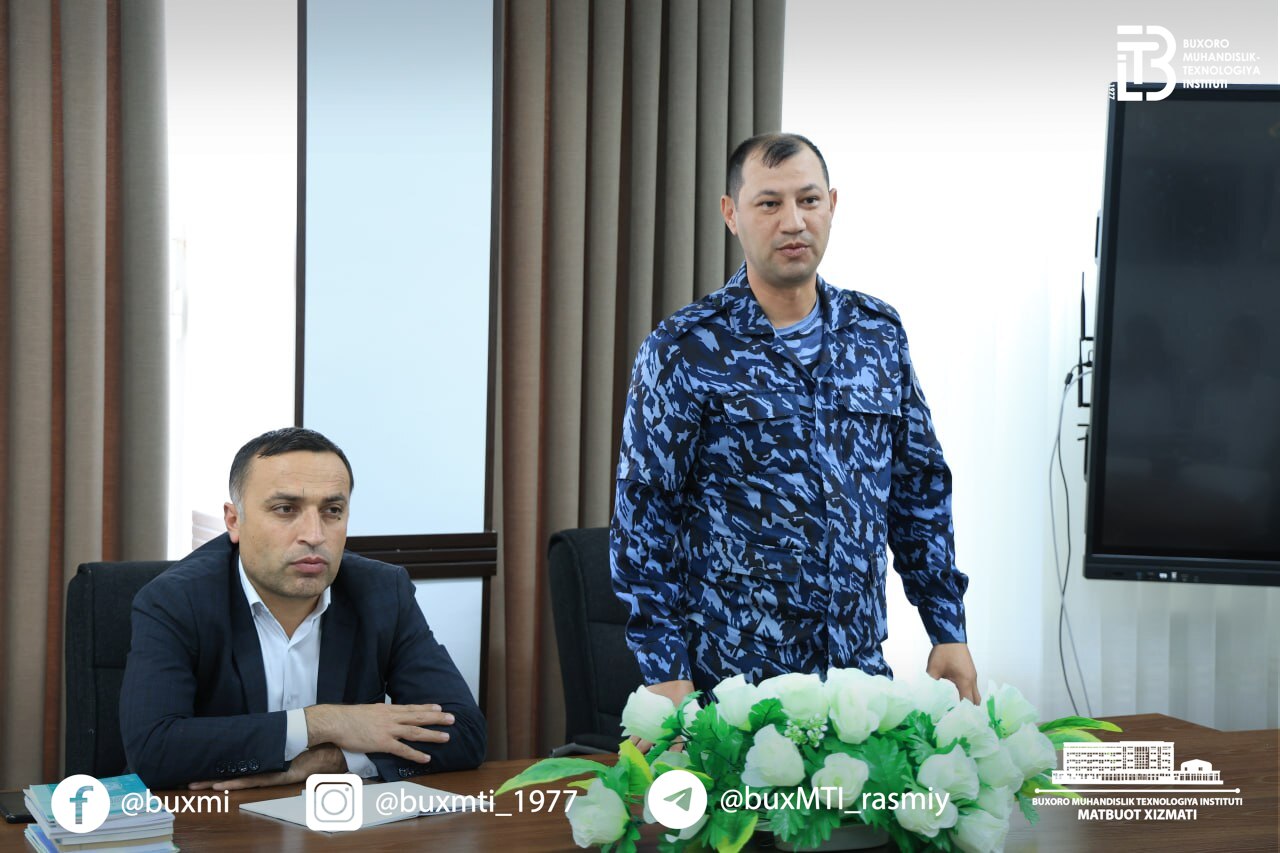 Bosh sahifa Buxoro muhandislik-texnologiya institutida tahsil olayotgan talabalar bilan jinoyatchilik va huquqbuzarliklarning oldini olishga qaratilgan ...