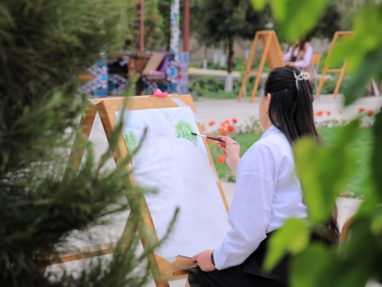 🔹Tanlov ishtirokchilari “Yashil makon” loyihasi, suvdan oqilona foydalanish, cho‘llanishga qarshi kurash va atrof-muhitni muhofaza qilish mavzularini mo‘yqalam orqali aks ettirdilar.