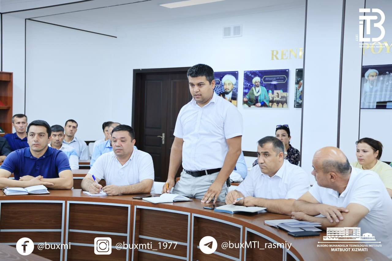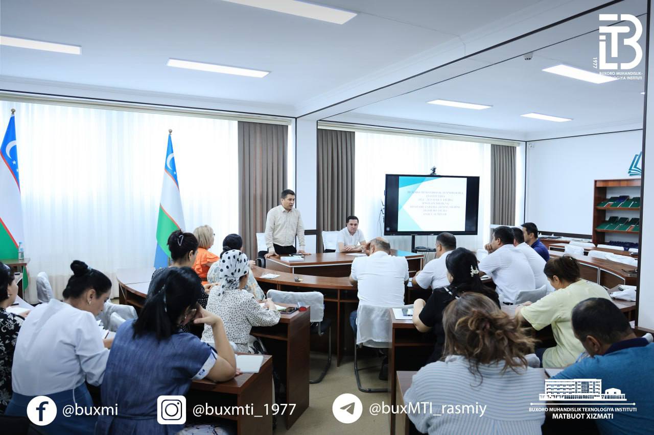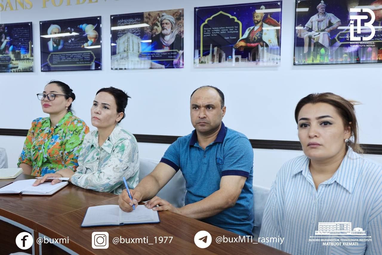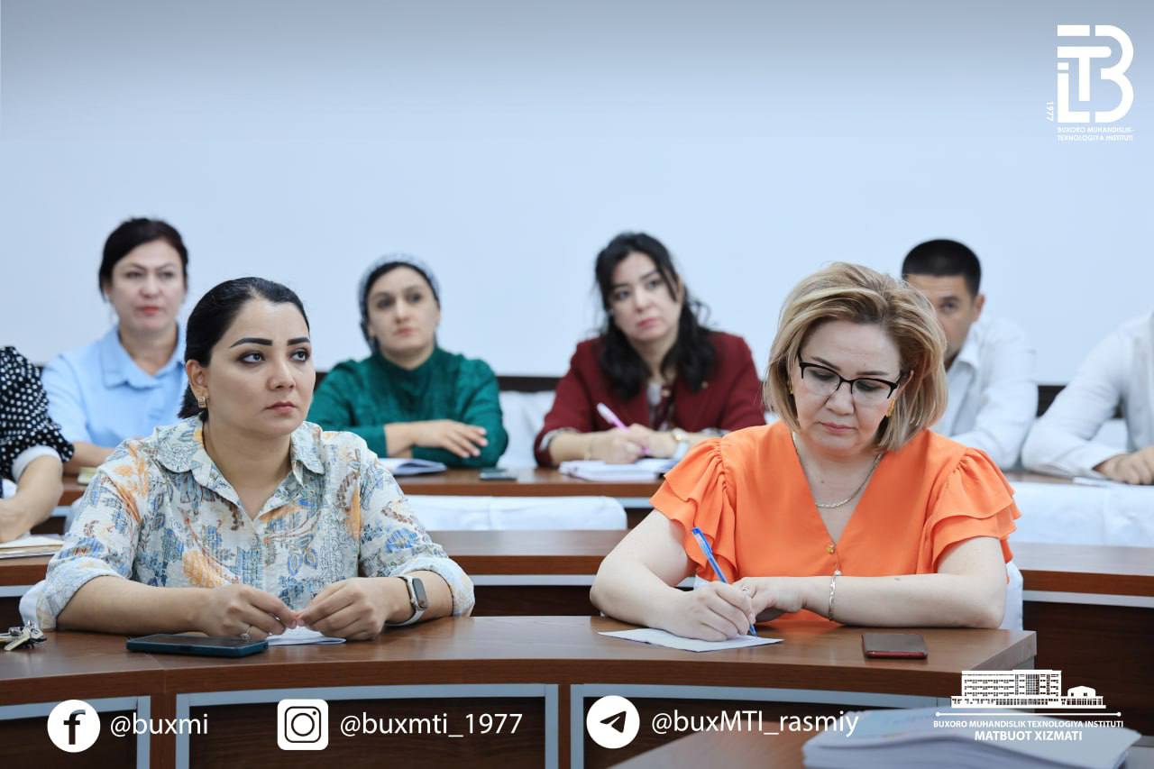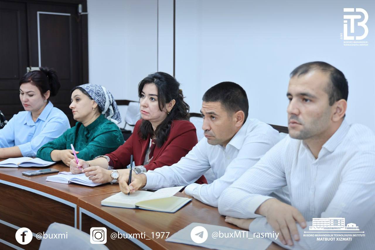 Buxoro muhandislik-texnologiya institutida rektor maslahatchisi Bobur Artikov hamda yoshlar masalalari va ma’naviyat ishlari boʻyicha birinchi prorektor Doniyor G’afurov va institutda yoshlar tarbiyasi va ma’naviy-ma’rifiy ishlarga mas’ul boʻlgan dekan oʻrinbosarlari, xotin-qizlar maslahat kengashi a’zolari, tyutorlar ishtirokida yangi oʻquv yiliga tayyorgarlik koʻrish, talabalar orasida jinoyatchilik va huquqbuzarlikni oldini olish maqsadida oʻquv seminari tashkil etildi.