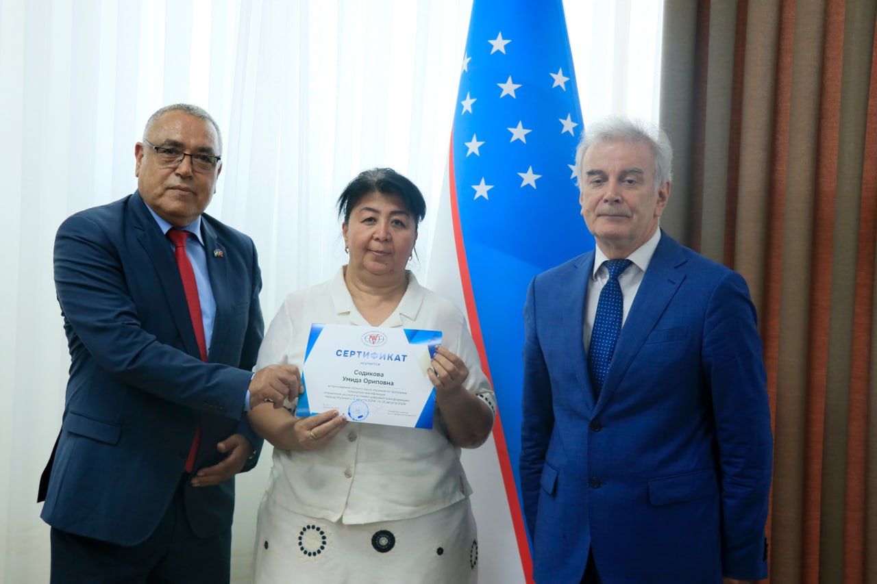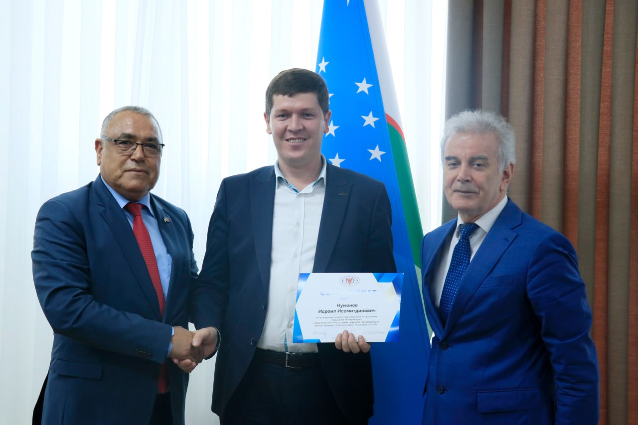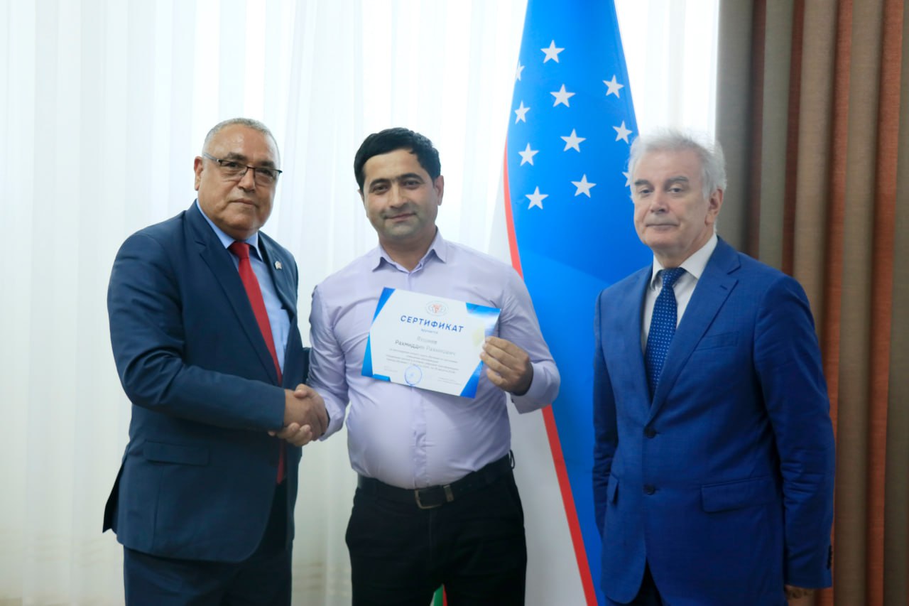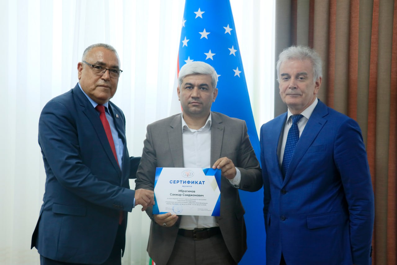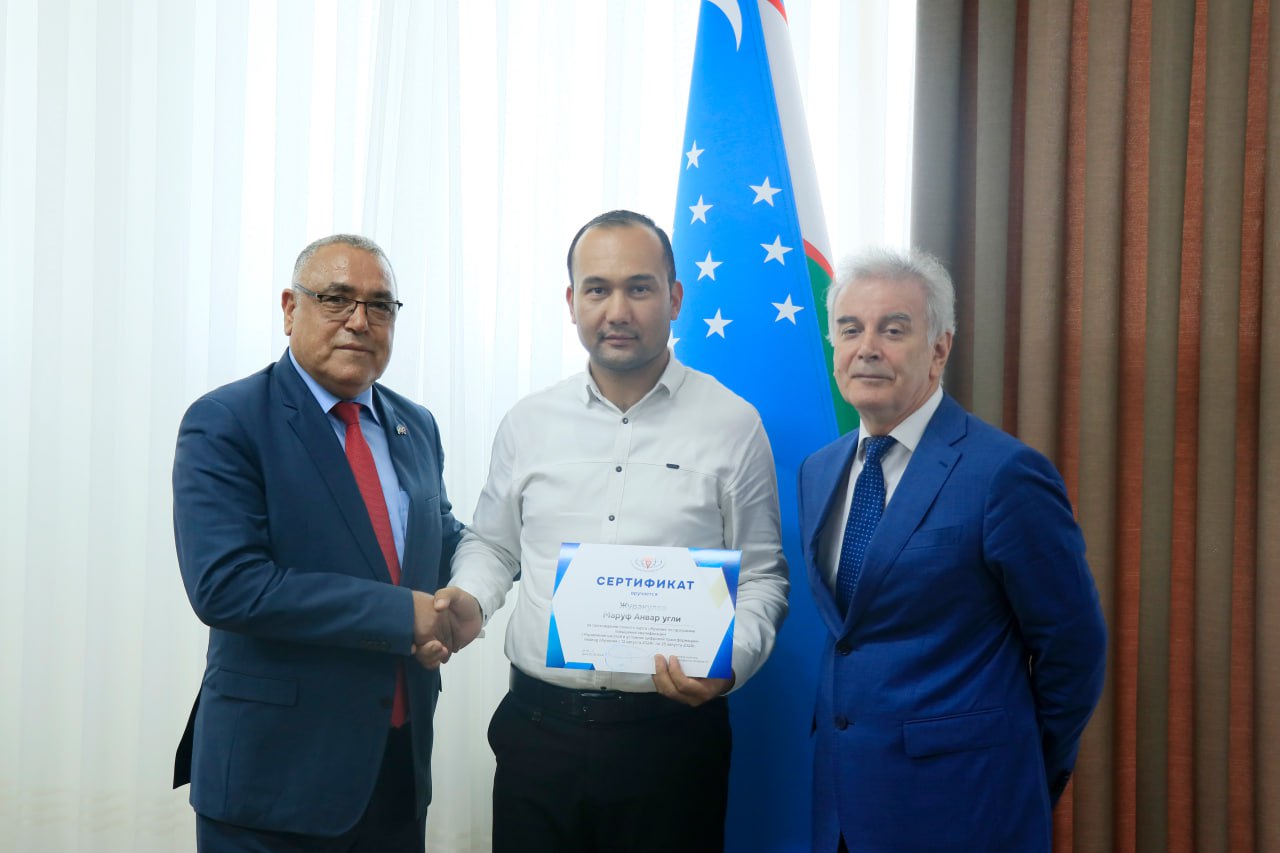 Tadbir yakunida Janubiy Universitet (IUBiP) rektori va Business Eurasia Alliance prezidenti Imran Gurruevich Akperov direktorlarga “Raqamli transformatsiya sharoitida maktab boshqaruvi” malaka oshirish kursini muvaffaqiyatli tamomlaganliklari uchun sertifikatlarni tantanali ravishda topshirdi.