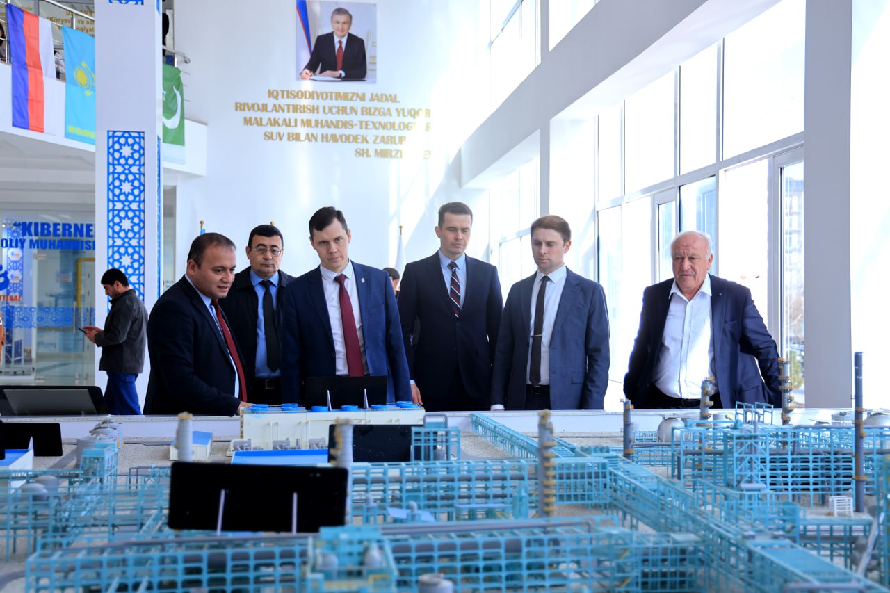 Bugun delegatsiya a’zolari Buxoro muhandislik-texnologiya institutida bo‘lib, fan, ta’lim va ishlab chiqarish o‘rtasidagi o‘zaro hamkorlik integratsiyasini mustahkamlash va malakali kadrlarni tayyorlash borasida institutning “KiberNeftGaz” ilg‘or muhandislik maktabi, “Mashinasoz” texnoparki, Registrator ofisi bilan yaqindan tanishib chiqdilar.