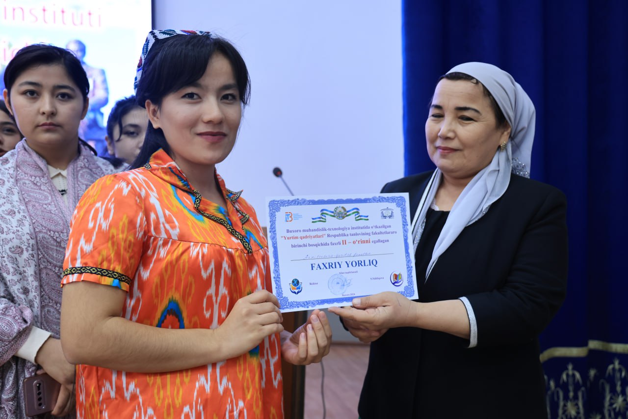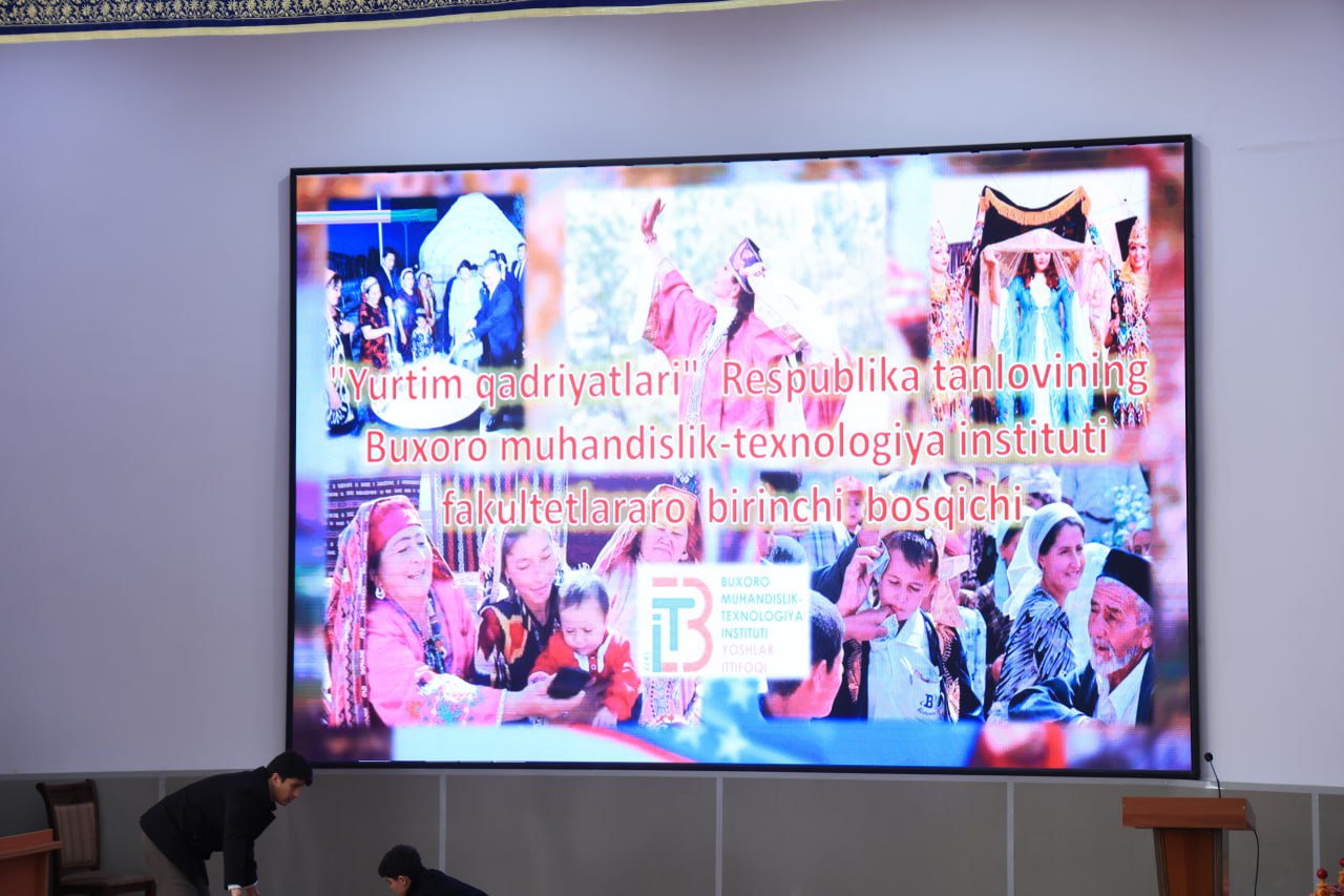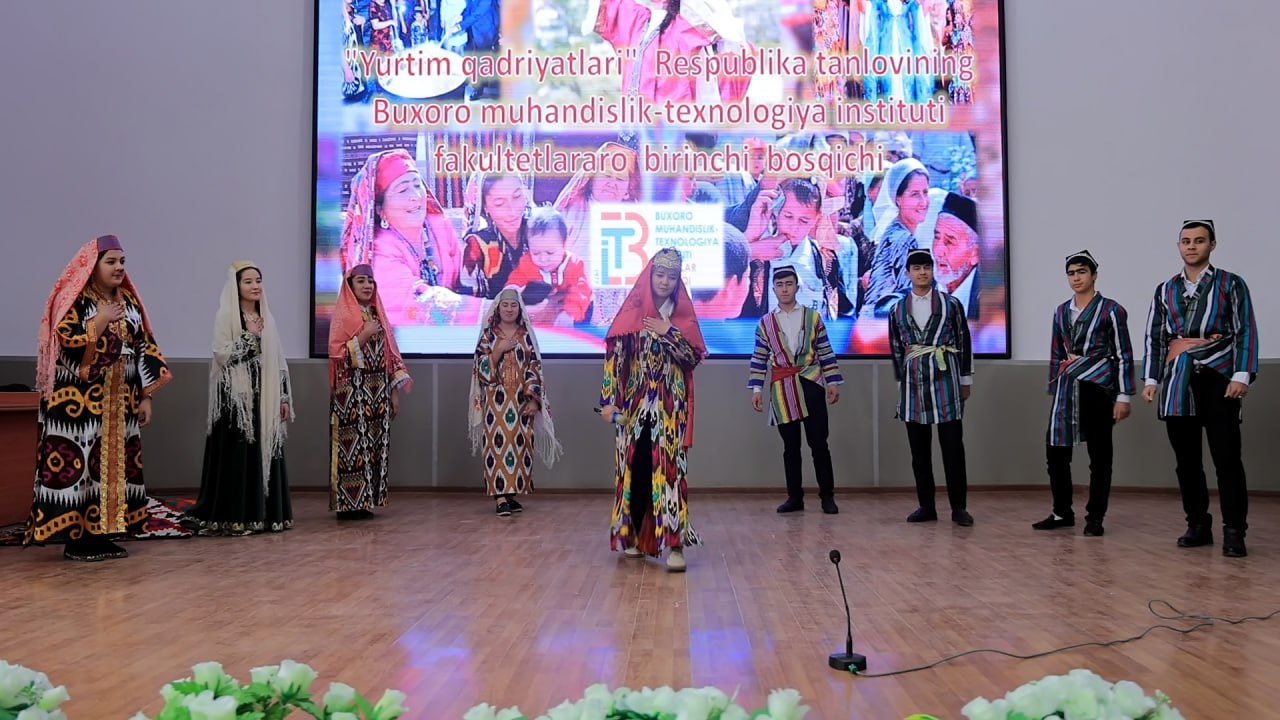 Buxoro muhandislik-texnologiya institutida “Yurtim qadriyatlari” respublika ko‘rik-tanlovining fakultetlararo birinchi bosqichi bo‘lib o‘tdi.