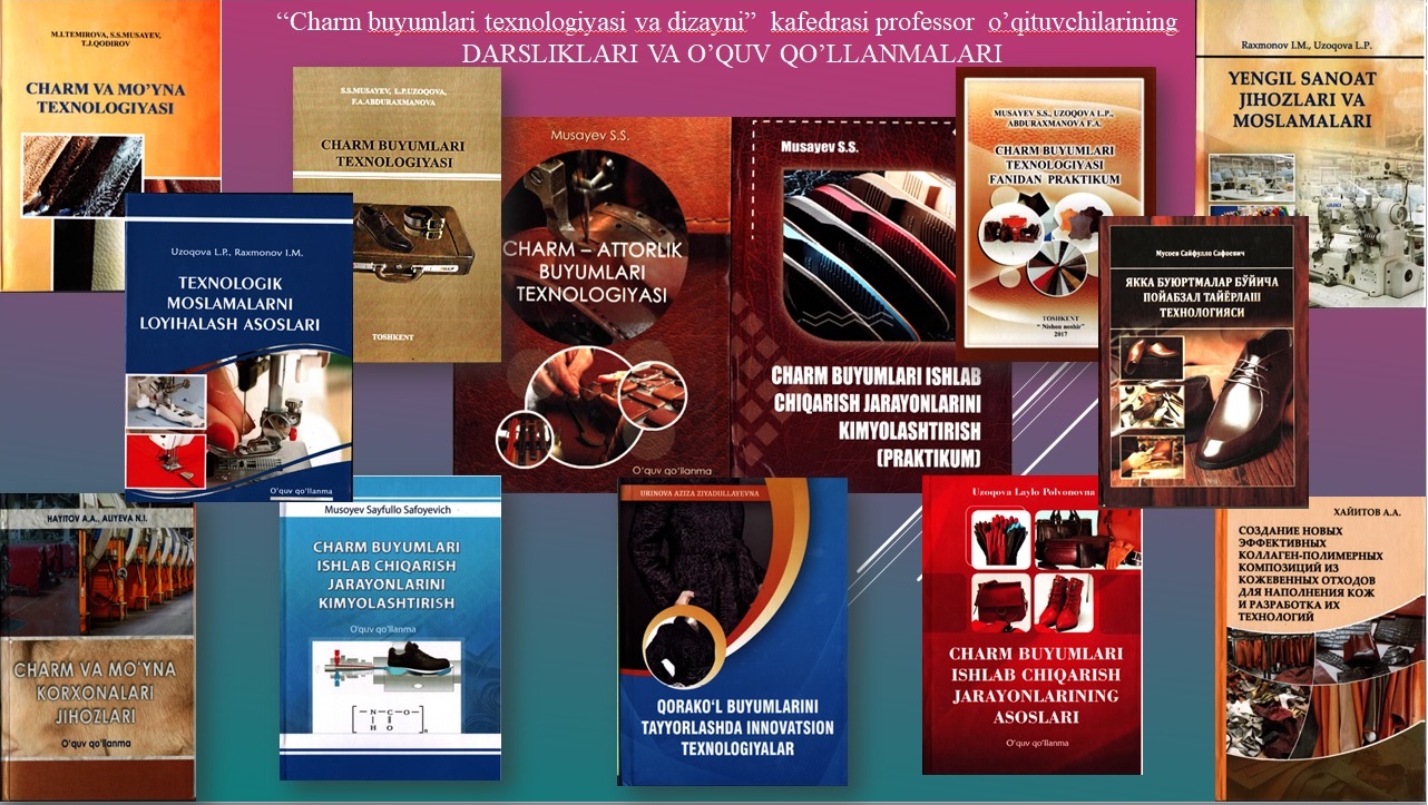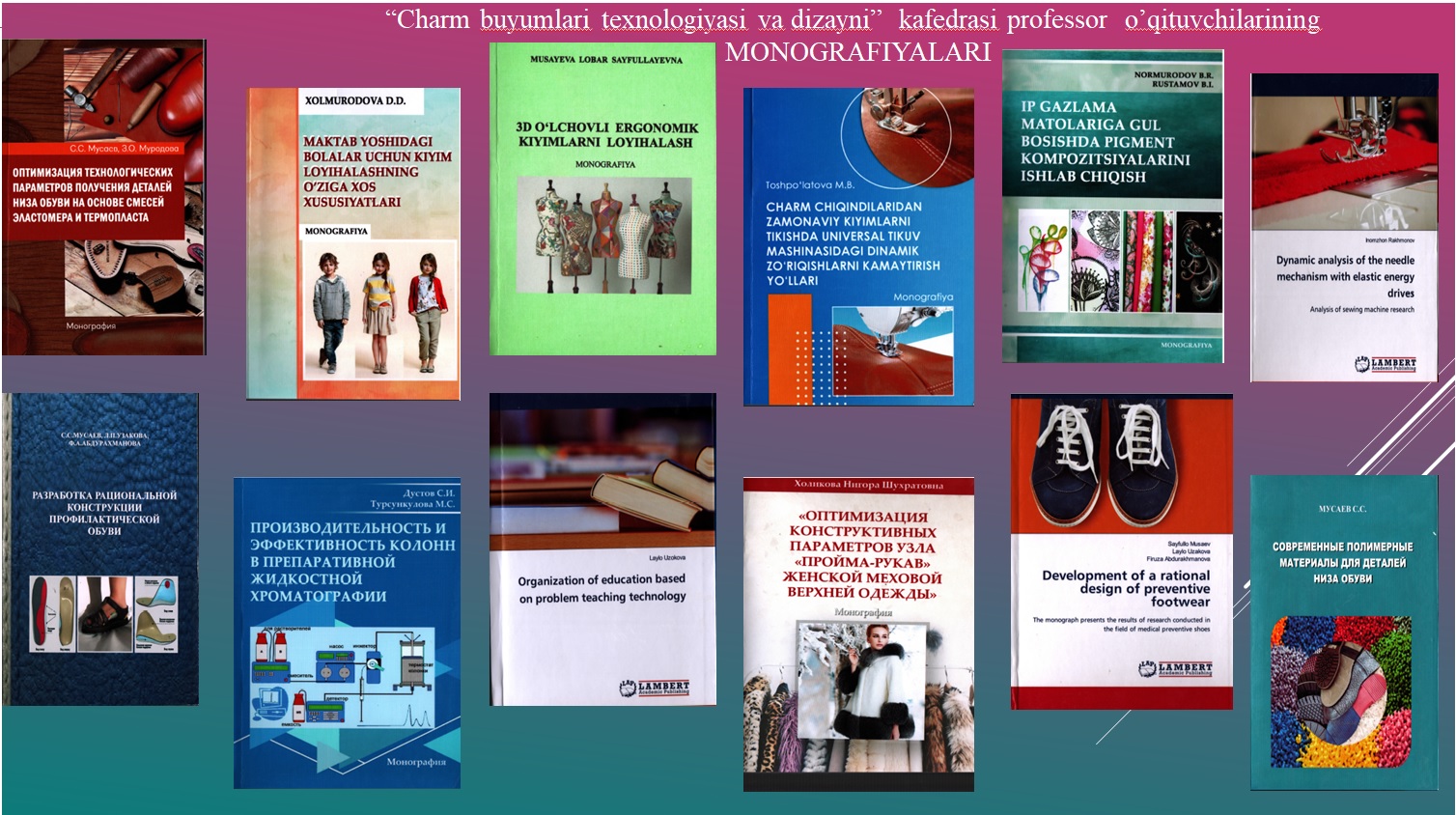 O‘zbekiston Respublikasi Prezidentining 15.04.2013 yildagi PQ 1954-sonli qaroriga va OvaO‘MTVning 16.04.2013 yildagi №124 sonli “Buxoro muhandislik-texnologiya instituti faoliyatini tashkil etish to‘g‘risida”gi buyrug‘iga asosan “Muhandislik-texnika” fakulteti tarkibida yangi “Texnologiyalar va jihozlar” kafedra tashkil etildi va kafedra mudiri etib t.f.n., dotsent S.S.Musayev tayinlandi. U “Texnologiyalar va jihozlar” kafedrasini 2013 yildan 2018 yilgacha boshqarib keldi. 2018-2019 o‘quv yil davomida kafedraga katta o‘qituvchi D.X.Bafoev raxbarlik qildi. Oliy va o‘rta maxsus ta’lim vazirining 2019 yildagi buyrug‘i asosida Buxoro muhandislik-texnologiya institutining yangi tizimi ishlab chiqildi, unga asosan 2019 yil 26 avgustdan “Charm buyumlari texnologiyasi va dizayni” kafedrasi tashkil etilib, kafedra raxbari sifatida t.f.n., dotsent I.M.Raxmonov va 2022 yil 08 sentabrdan kafedraga texnika fanlari nomzodi (PhD), professor Musayev Sayfullo Safoyevich raxbarlik qilmoqda. Kafedra 2021 yil 15 sentabrdan institut rektorining № 449-U sonli buyrug`iga ko`ra “Charm buyumlari texnologiyasi va dizayni” nomi bilan faoliyat olib bormoqda. Kafedrada 15 nafar pedagog-xodim faoliyat yuritib, ilmiy salohiyat 75% ni tashkil etadi. Jumladan: 1 nafar fan doktori-professor, 4 nafar fan nomzodi, dotsentlar, 3 nafar PhD, 2 nafar katta o‘qituvchi va 6 nafar assistant, 3 nafar o`qituvchi-stajyor. Kafedra o‘qituvchilari tomonidan so‘ngi uch yilda 3 nafar falsafa doktori (PhD) ilmiy ishlari himoya qilindi. 2021-2022 o`quv yilining o`zida, yakka mualliflik va hammualiflikda 20 ga yaqin elektron darslik (DGU), xalqaro (impakt faktorli) 3 ta darslik, 10 ta o‘quv qo‘llanma, 20 ta monografiya, OAK ro‘yxatidagi jurnallarda 35 ta va 6 ta maqola Scopus bazasida chop etildi. Kafedrada 7 nafar doktorant va 2 nafardan mustaqil izlanuvchilar ilmiy-tadqiqot ishlari bilan shug‘ullanmoqda.