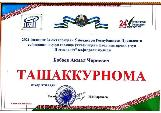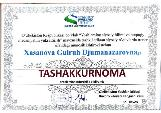 ![]() | Благодарственным письмом награждена Хасанова Гулрух Джуманажаровна за достойное участие в качестве тренера в политических учениях, организованных по Республике Узбекистан на тему «Повышение политических знаний и правовой культуры молодежи» |