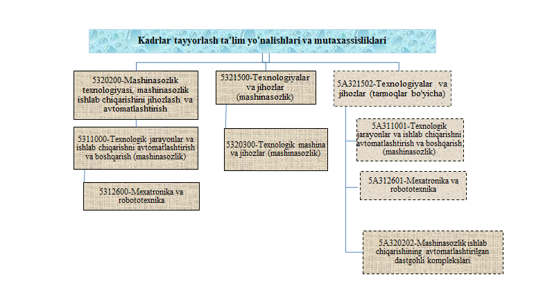 7 августа 2017 года по решению Ученого совета Бухарского инженерно-технологического института кафедра «Технология машиностроения» была реорганизована и возглавил ее Уринов Н.Ф. В настоящее время на кафедре ведется подготовка бакалавров по напрвлениям 5321500-Технология и оборудование (машиностроение) и 5111000-Профессиональное образование (5320200-Технология машиностроения, оборудование и автоматизация производства машиностроения) и магистров по специальности 5А321502-Технологии и оборудование (по отраслям)..